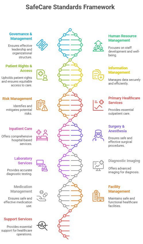 SafeCare standards span clinical and non‑clinical domains, ensuring a holistic approach to quality.